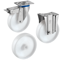 Свойства материала обеспечивают обширную сферу применения изделий. Колеса из полиамида применяются в пищевой, химической и фармацевтической промышленности, подходят для комплектации мебели, оборудования и аппаратуры. Нейлон обладает низким сопротивлением качению, что снижает нагрузку на оператора, обеспечивая плавный легкий ход.