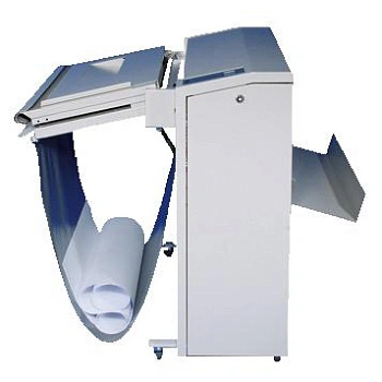 - Оснащен ручной подачей и корзиной для документов, выводящихся без фальцовки