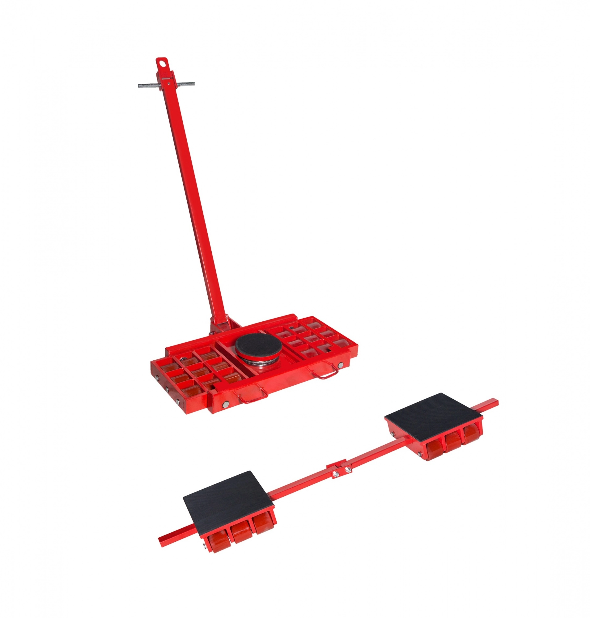 Комплект такелажных платформ X18 и Y18 рассчитан на перемещение различных грузов и оборудования весом до 36т. Система для перемещения груза X18 и Y18 представляют собой стальную комплексную конструкцию, состоящую из двух частей: 1. Ведущая опора X18 снабжена ручкой для перемещения опоры и поворотным диском для маневрирования. 2. Ведомая опора Y18. состоит из двух неуправляемых такелажных платформ. Имеет регулируемую штангу, по её длине до 1,5м, в зависимости от габаритов перевозимого груза, можно сближать и удалять друг от друга роликовые платформы. В зависимости от веса груза, перемещение может осуществляться такелажными системами с одним или двумя ведущими катками. Два ведущих катка применяют для балансирования и безопасного перемещения больших по размерам и сверхтяжелых грузов. Количество роликов Х-18 шт., материал роликов полиуретан, размер платформы Х18-780х550х110мм., диаметр поворотного диска Х18 мм- 200мм., длина рукоятки Х18-1100мм., количество роликов Y18 2х9 шт, материал роликов Y18- полиуретан, размер платформы Y18-300х550х110мм., длина штанги, Y18-1500мм., вес комплекта 138кг.