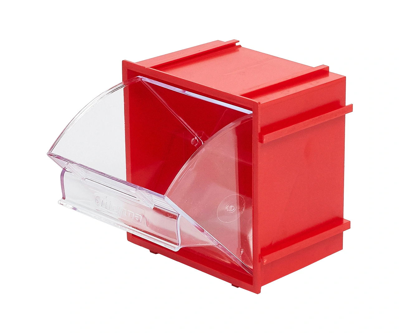 Короб откидной Стелла-техник F-70-1 (70х60х76мм.) красный, прозрачный служит для хранения мелкоштучных предметов. Данные короба с помощью специальных пазов соединяются друг с другом по всем четырем сторонам, благодаря чему, пользователь может выстроить систему хранения по желаемым ему габаритным размерам. Внутренние ячейки короба не подвержены случайному опрокидыванию. Откидная ячейка обеспечивают быстрый доступ к необходимым предметам. В случае необходимости полного высыпания или наполнения внутренние ячейки легко извлекается. Полезный внутренний размер ячеек 56х43х47мм. Специальный пластик, из которого выполнен короб, выдерживает значительные нагрузки и обладает оптимальной эластичностью. На задней стенке короба присутствуют отверстия для крепления, через которые можно легко прикрепить к стене как отдельно каждый короб, так и целый набор из любого количества собранных коробов. Обзорность содержимого сквозь прозрачные внутренние ячейки, наличие отсека для информационных бирок, легкое извлечение внутреннего короба для опустошения и наполнения, все это является неоспоримым преимуществом откидных коробов серии F. Температура эксплуатации от -10 до +70С.