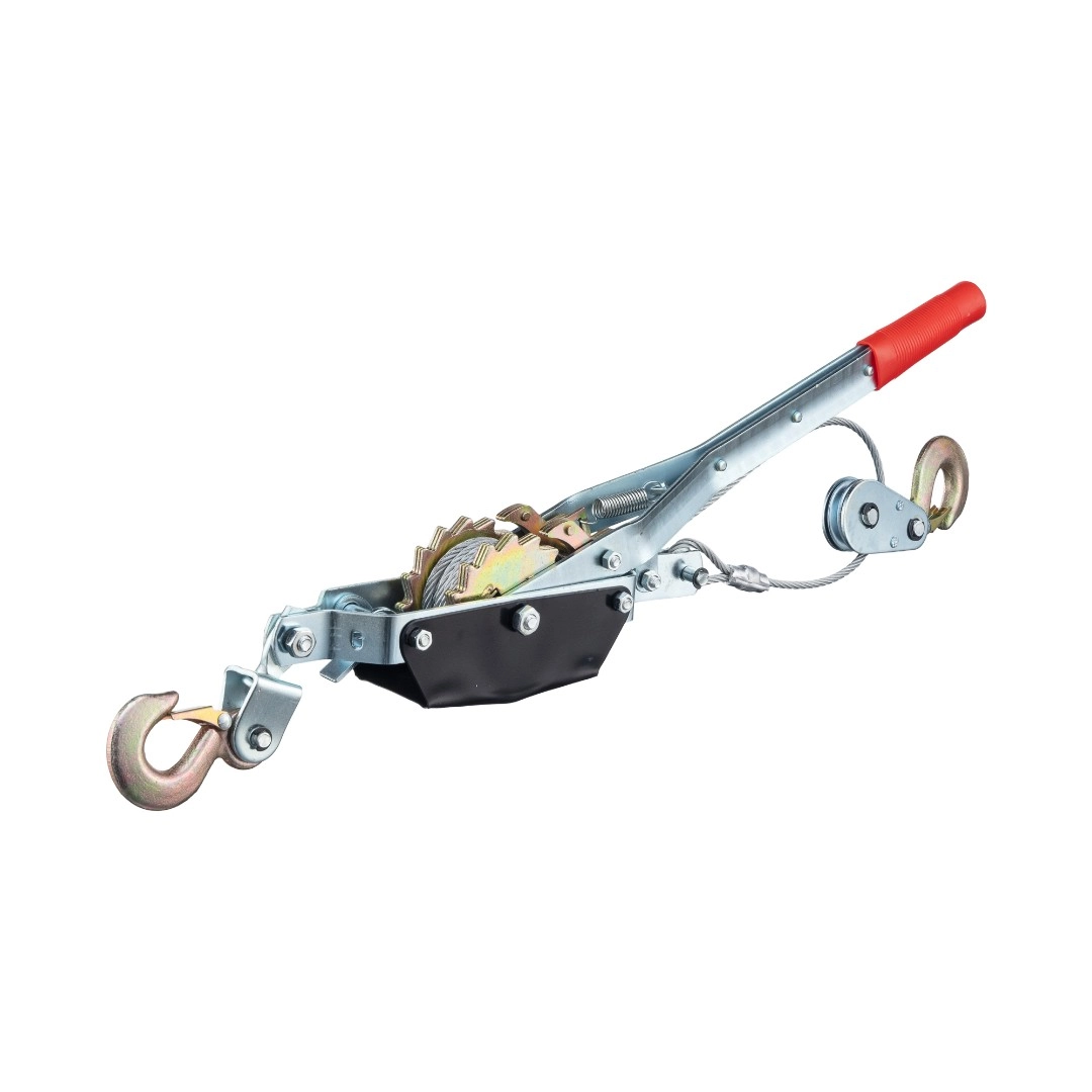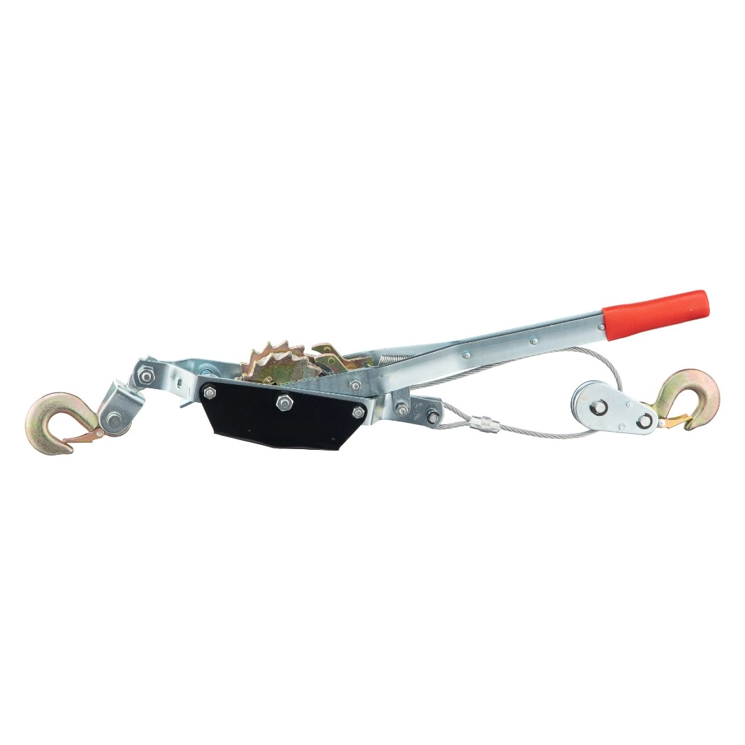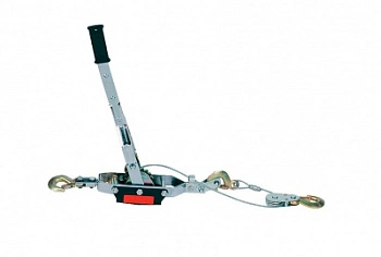 Ручные рычажные лебедки P40SG предназначены для подтягивания грузов, вытягивания автомобилей и других транспортных средств, для натягивания линий электропередач, установки радиомачт, а также для подтягивания различного оборудования при монтажных и строительных работах. Рукоять имеет пластиковый наконечник, что делает работу удобной и исключает выскальзывание. При длине троса 3м. тяговое усилие достигает 1,5т., а при длине 1,5м уже 2т., диаметр троса 5мм., габариты 650х200х200мм., длина 3м. Вес 6 кг. Управление механизмом осуществляется за счет качения рычага. Храповый механизм работает только в одну сторону. Данный ручной механизм позволяет производить работы в местах, где отсутствует источник электроэнергии. Количество крюков 2. Преимущества лебедки P40SG: легкость в работе; небольшой вес; прочная конструкция; высококачественный трос; не требует дополнительного обслуживания; рукоять рычажной лебедки имеет оптимальную длину, что снижает физическую нагрузку с пользователя; крюки имеют предохранительные карабины для защиты груза от соскальзывания.
