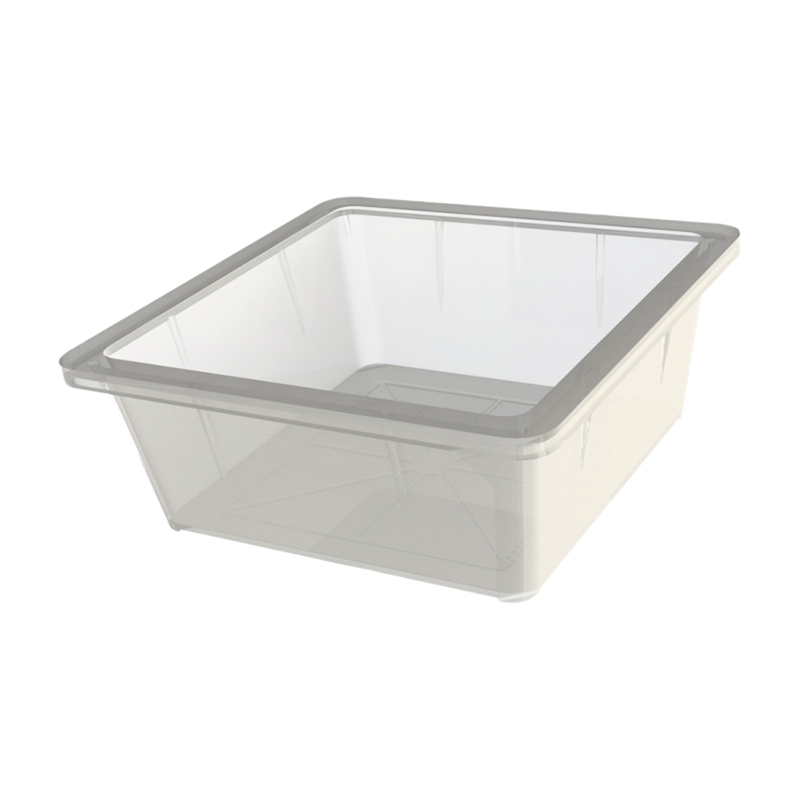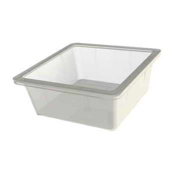 Удобная, компактная и вместительная форма лотка позволяет эффективно выкладывать в нем молочную продукцию на полках в ритейле.
