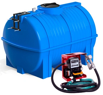Бак выполнен из прочного полиэтилена и усилен продольными рёбрами жёсткости, что делает его устойчивым к внешним нагрузкам и деформациям при эксплуатации. Заправочный модуль подключается к электросети и обеспечивает стабильную подачу топлива с учётом расхода.