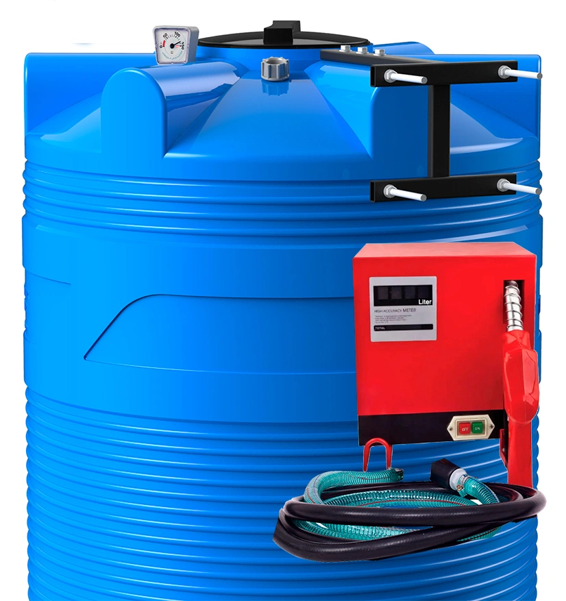Бак выполнен из прочного полиэтилена и усилен продольными рёбрами жёсткости, что делает его устойчивым к внешним нагрузкам и деформациям при эксплуатации. Заправочный модуль подключается к электросети и обеспечивает стабильную подачу топлива с учётом расхода.