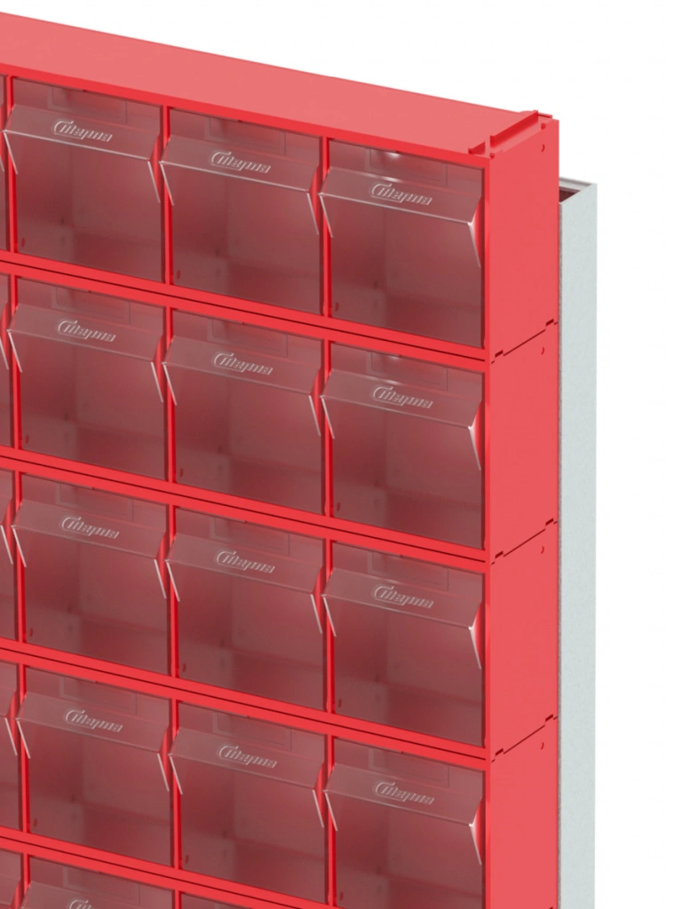 Стойка напольная Стелла-техник 405-00-16-00 (610х325х1850) представляет собой удобную систему хранения на основе откидных коробов. Стойка подойдет для выставочных залов, магазинов, офисов, складов. Комплектация: Рама FOX (610х325х1850) V405 напольная односторонняя с основанием - 1 шт.; Короб откидной Стелла-техник F-600-6 , 600х96х112мм, 6 ячеек, красный, прозрачный – 16 шт.; Упаковка. Преимущества: Металлическое основание; Значительная устойчивость; Хорошая вместимость; Длительный срок службы.