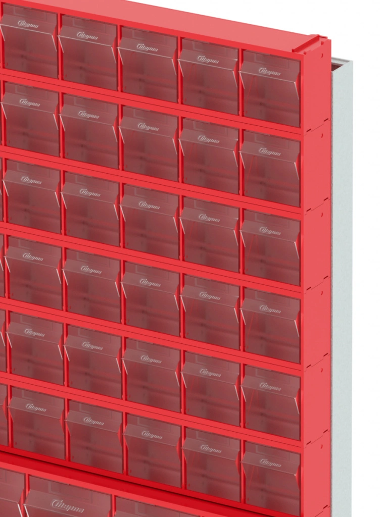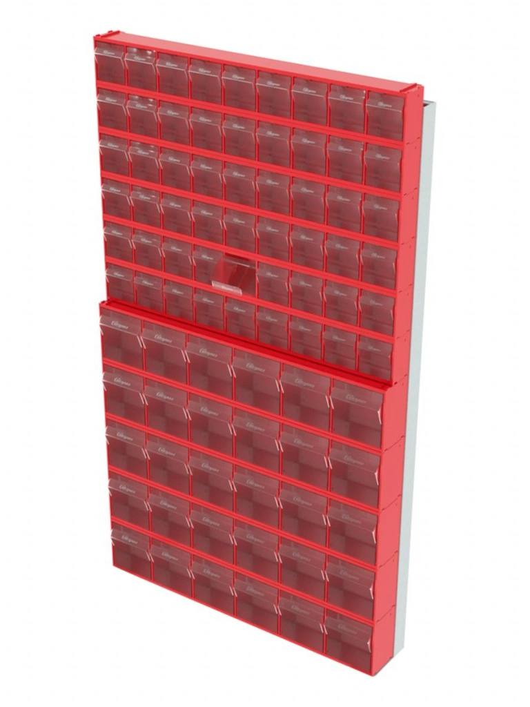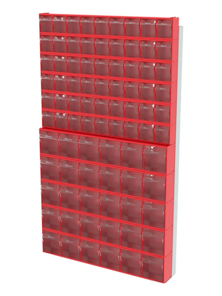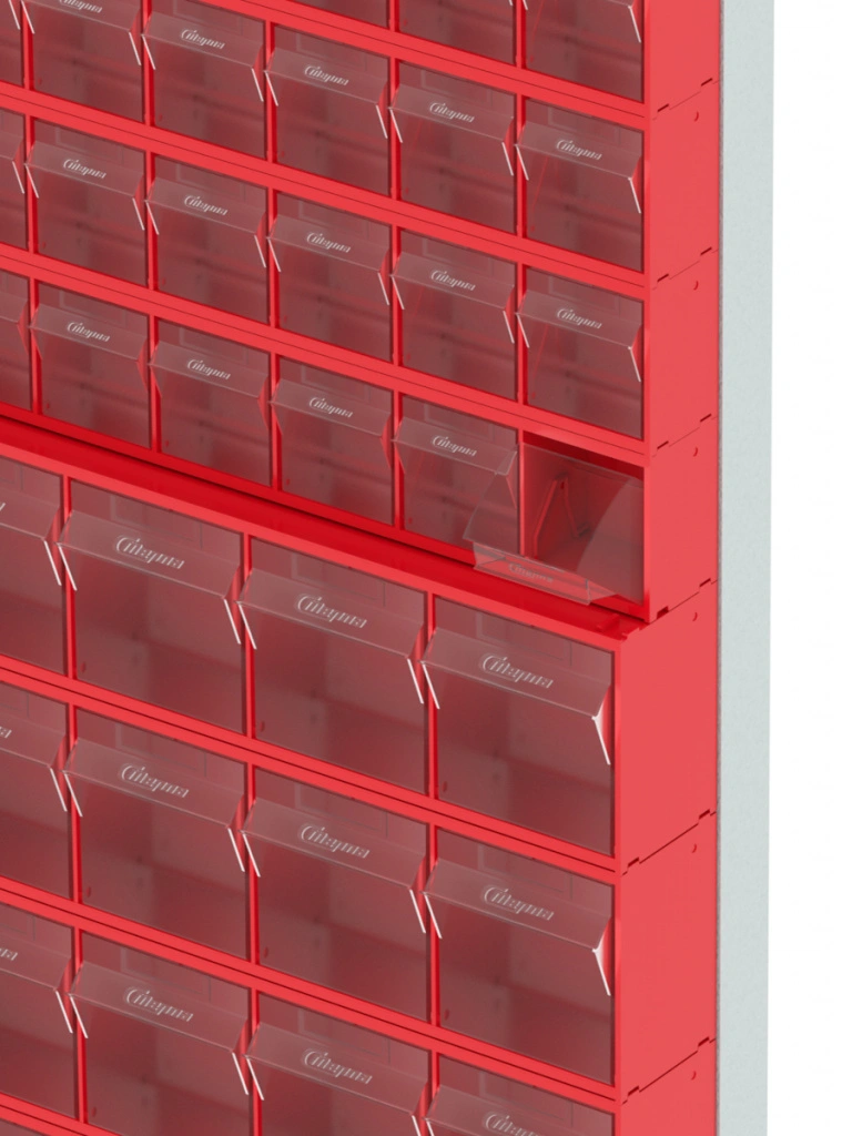 Стойка настенная Стелла-техник 402-06-05-00 (610х40х1000) представляет собой удобную систему хранения на основе откидных коробов, которая подойдет для использования в выставочных залах, магазинах, складах. Стойка крепится на стену при помощи саморезов или анкерных болтов (крепеж не входит в комплект и подбирается под уровень загруженности стойки). Комплектация: Рама FOX (610х40х1000) V402 - 1 шт.; Короб откидной Стелла-техник F-600-9 , 600х68х78мм, 9 ячеек, красный, прозрачный - 6 шт.; Короб откидной Стелла-техник F-600-6 , 600х96х112мм, 6 ячеек, красный, прозрачный – 5 шт.; Упаковка. Преимущества: Металлическое основание; Значительная устойчивость; Хорошая вместимость; Длительный срок службы.