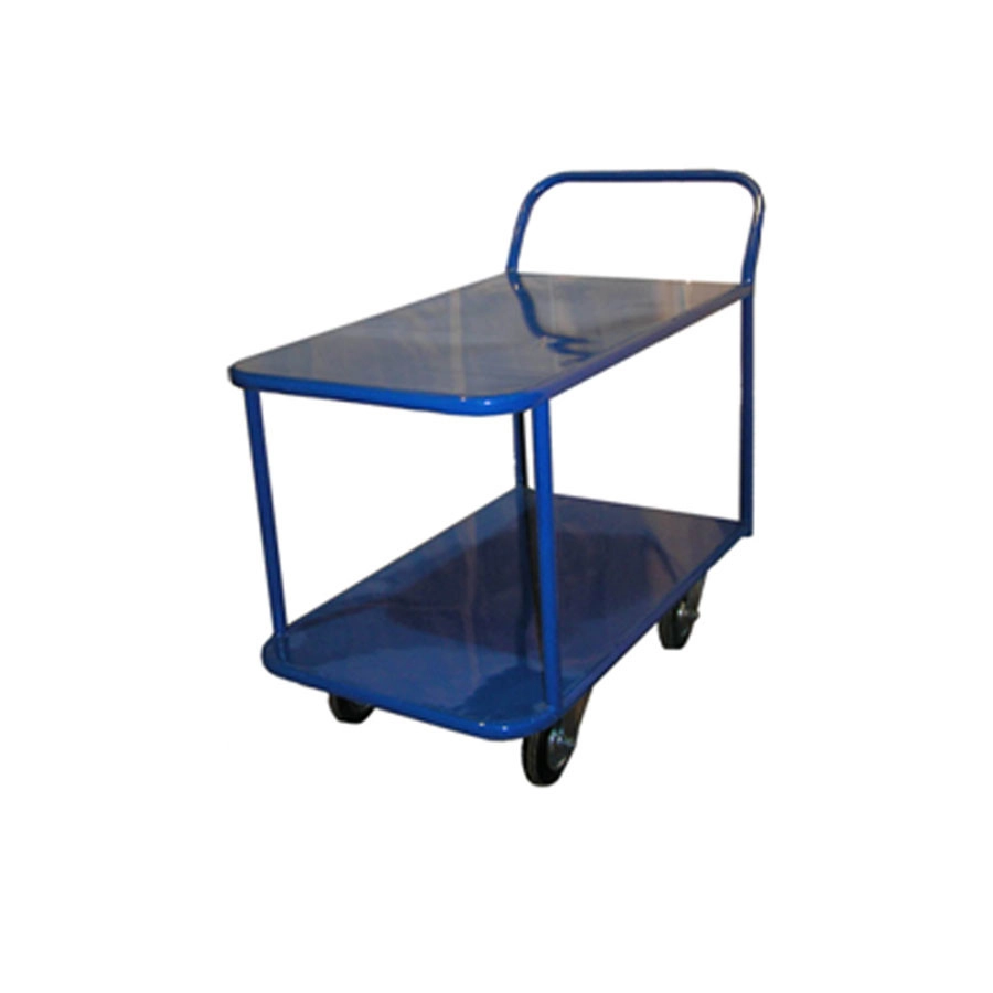 Платформенная двухъярусная 4-х колесная тележка КП-2 (2-х ярусная) используется для перевозки малогабаритных грузов. Платформы имеют металлический каркас накрытый металлическим листом толщиной 1,2мм. Размер платформы 700х1200мм. Расстояние между ярусами 480мм. Количество ярусов - два.Габаритная высота 1050мм.Покрытие металлических деталей тележки - полимерное. Цвет - синий.Тележка КП-2 (2-х ярусная) оснащена двумя поворотными и двумя неповоротными колесами, изготовленными из высококачественной литой резины, диаметром 200мм, комплектом крепежа. Две платформы позволяют удобно расположить перевозимые предметы.Тележка широко используется на складах, в торговых павильонах, а также в гостиничном и ресторанном бизнесе. Грузоподьемность до 550кг.