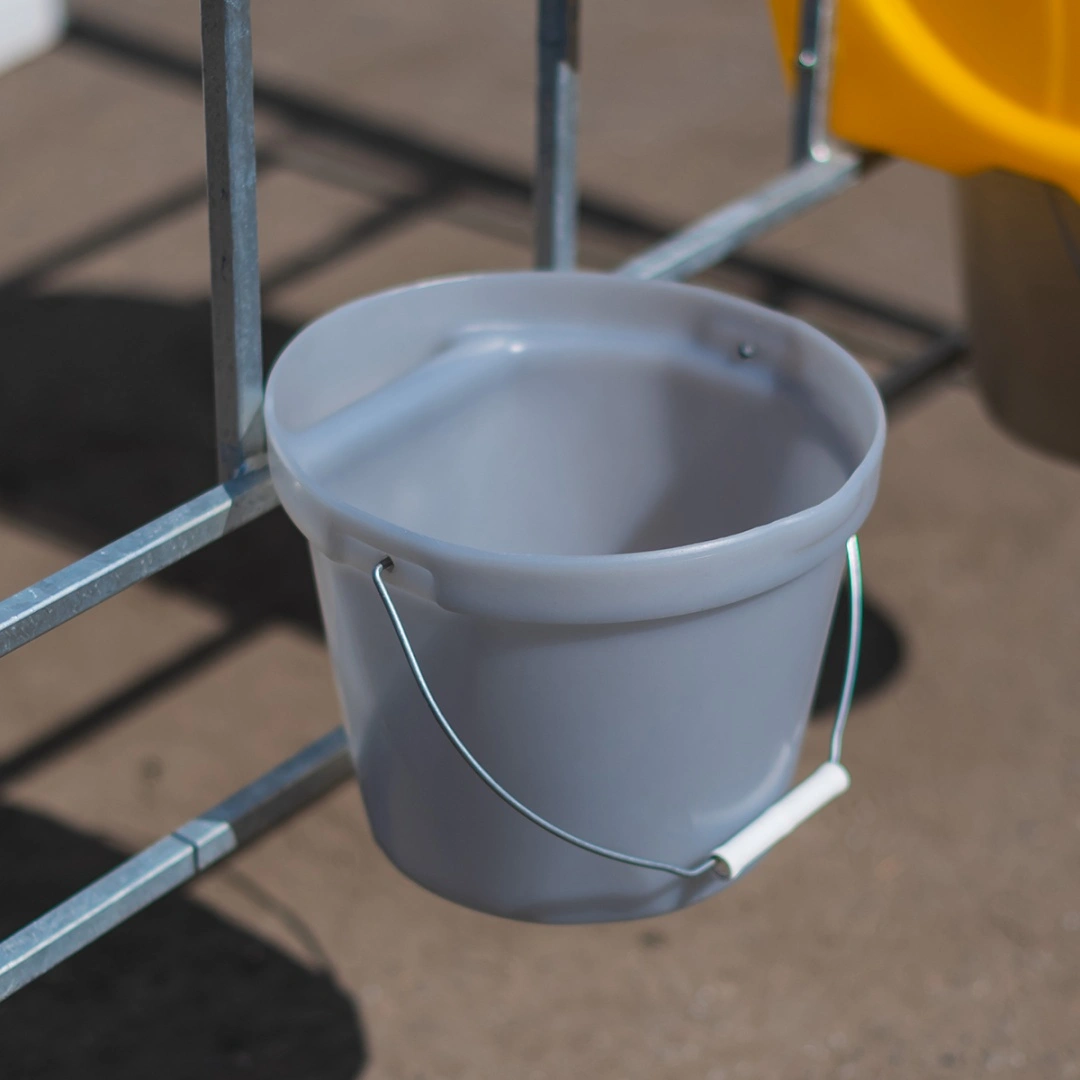Конструкция ведра позволяет закрепить его в любом месте на металлическом профиле вольера.