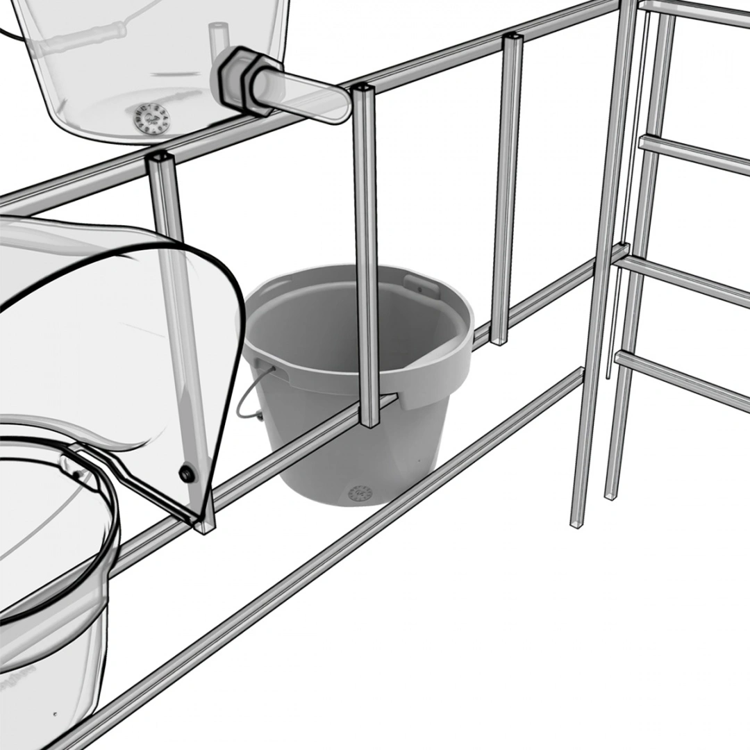 Не требуют дополнительных креплений. Легко и быстро устанавливаются в любом месте на металлическом профиле вольера, позволяя организовать питание телят в различных климатических зонах.
